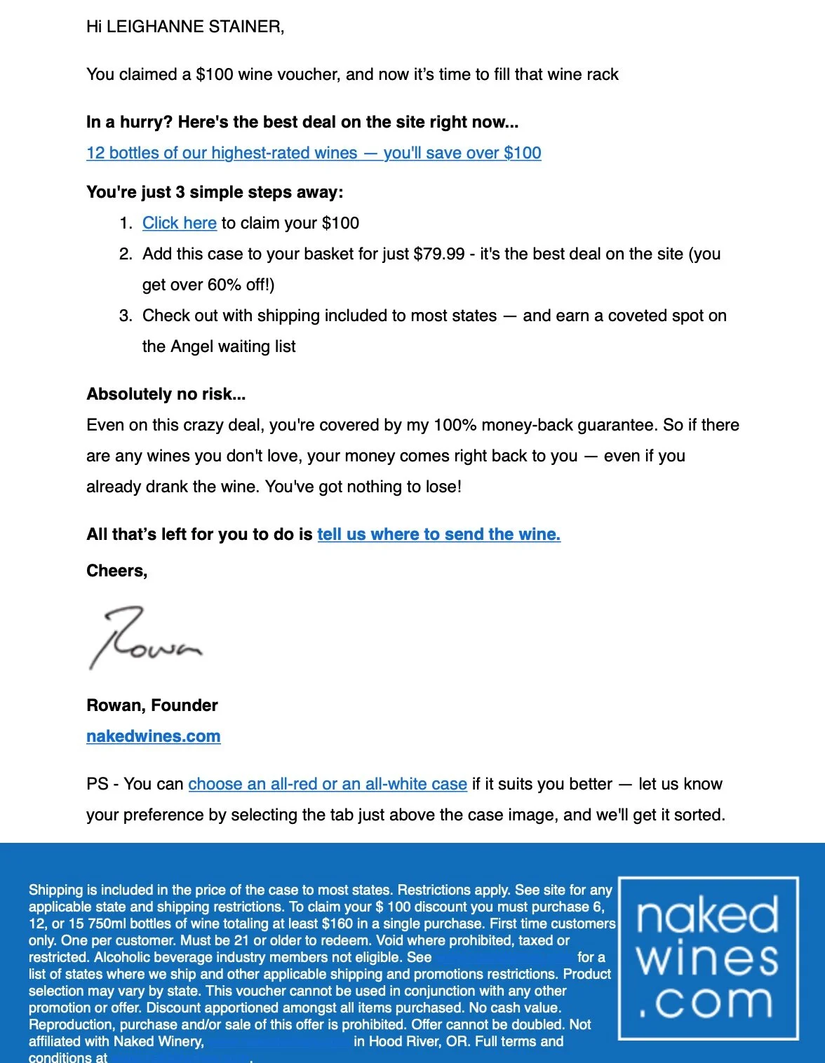 Drafted in to work on the US side of the business, Naked Wines US is a mail order wine company based out of Napa, California. I produced a diverse range of email and direct mail campaigns for this subscription based business as well as product copy, press releases and social media advertising campaigns.